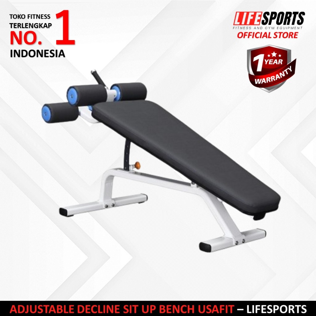 Lifesports - New Alat Olahraga Fitness Gym Adjustable Decline Sit Up Bench Usafit Commercial