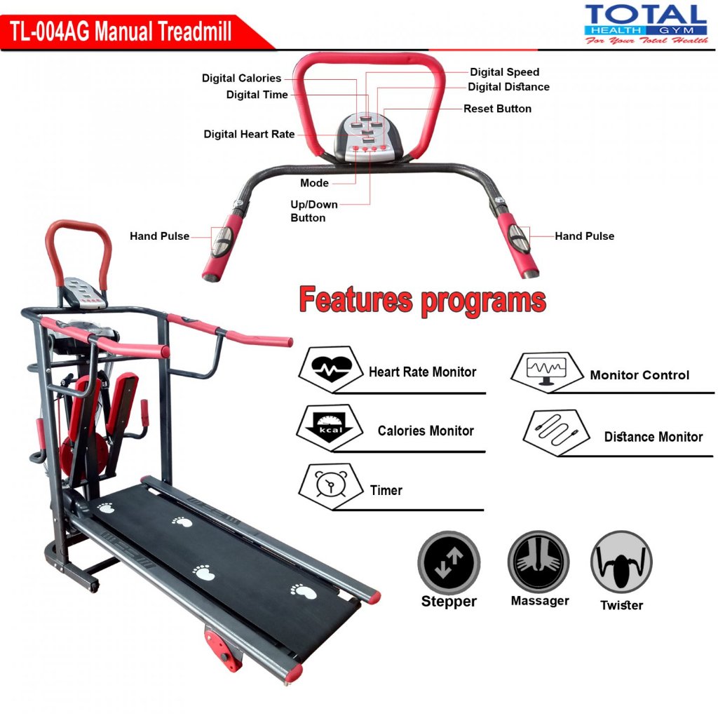 TOTAL - New Alat Olahraga Gym Fitness Walking Pad Treadmill Manual 6 Fungsi TL 004 AG