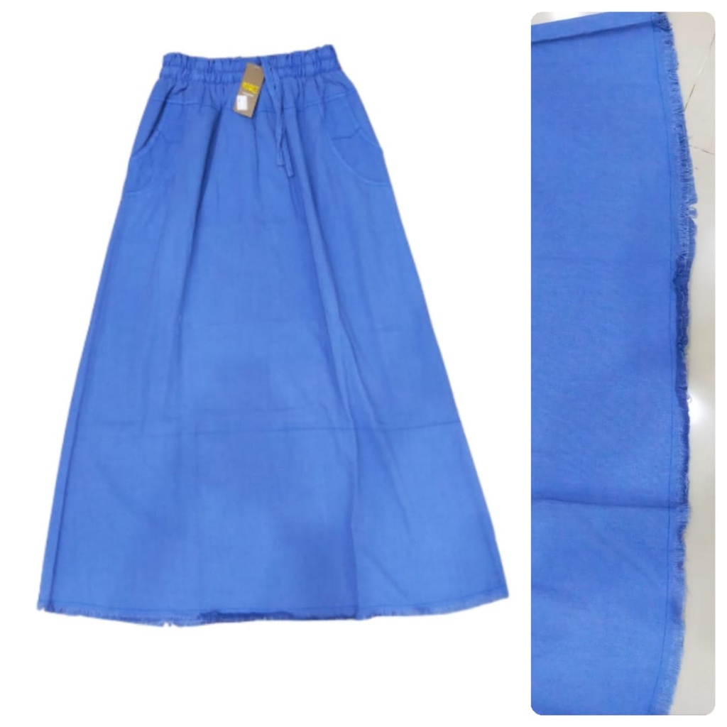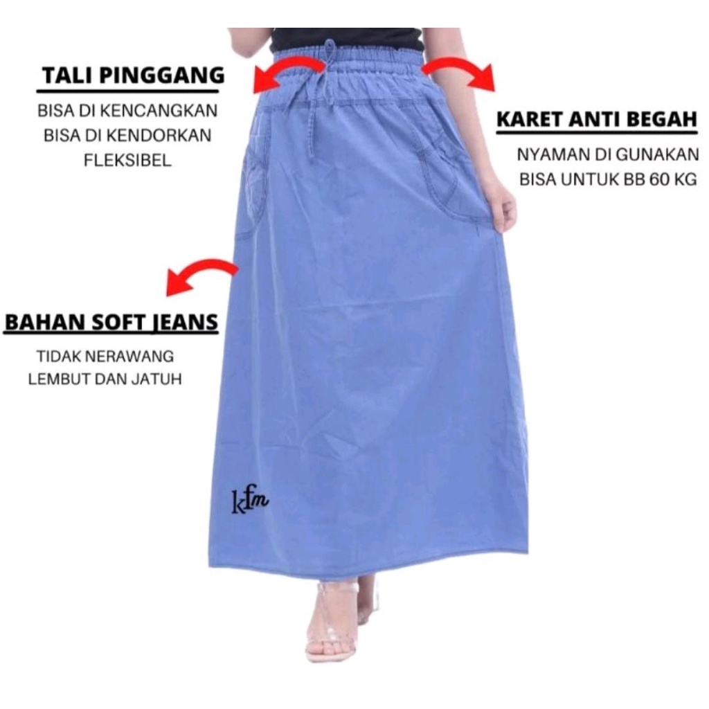Rok Jeans Panjang Wanita | Rok Jeans Kancing Depan | Rok Denim Panjang | Rok Plisket Premium Wanita