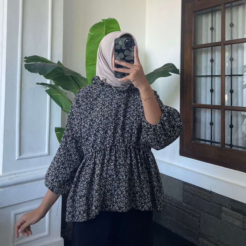 ATASAN WANITA VINTAGE KOREAN STYLE | SESA BLOUSE BLOUSE FLOWY TOP | flower blouse olla blouse korean style