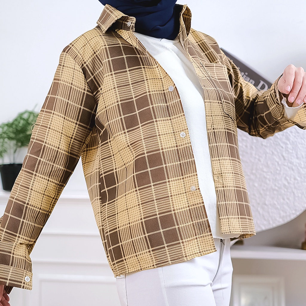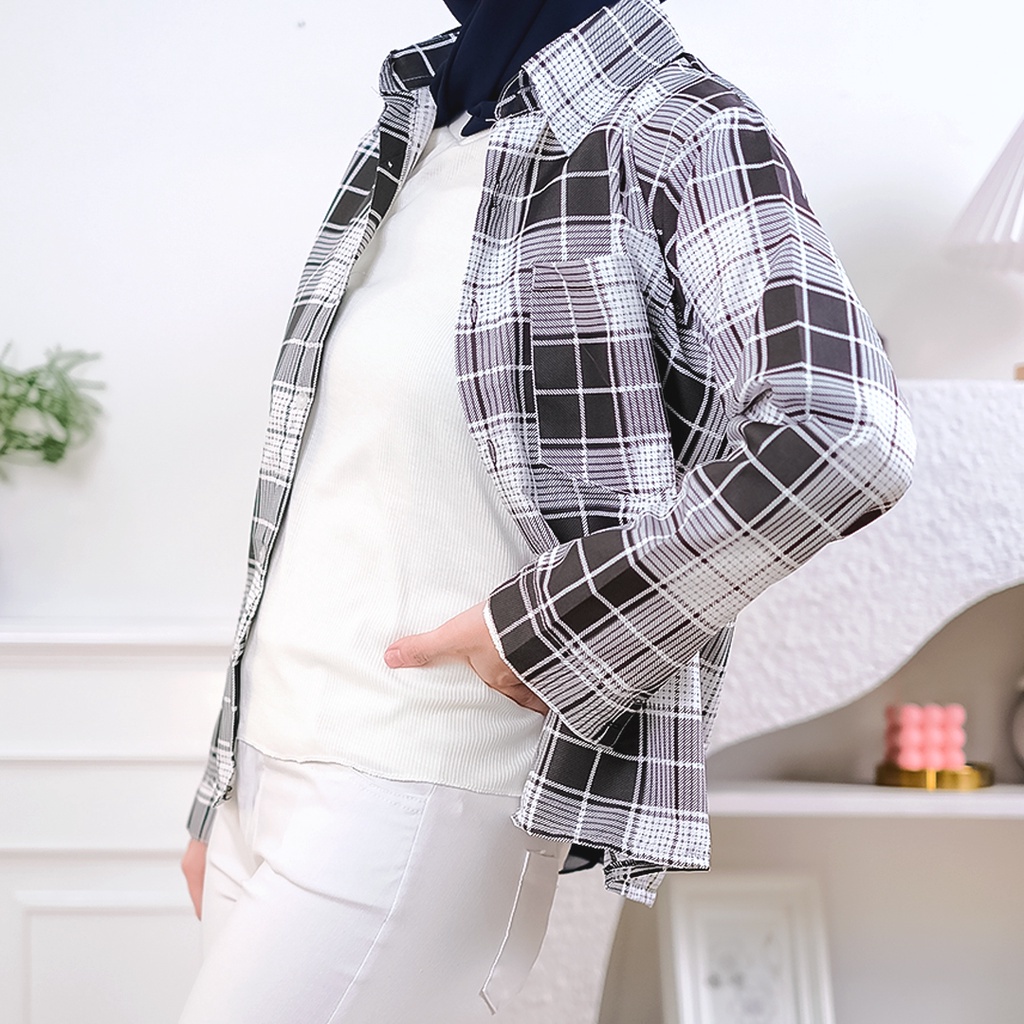 KOHZEN - ZEC Kemeja VERIO / Kem Glarin / Kemeja Wanita Motif Kotak-Kotak / Atasan Kemeja Kekinian Hits