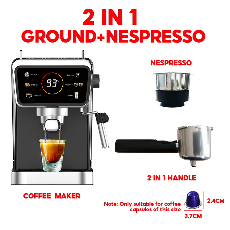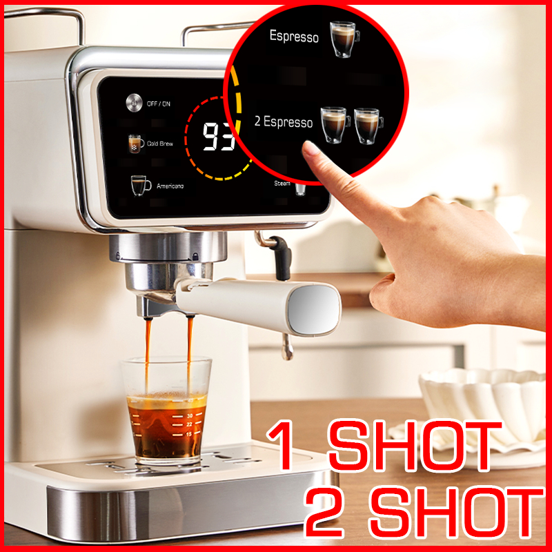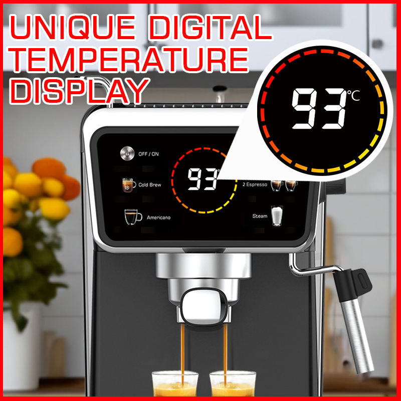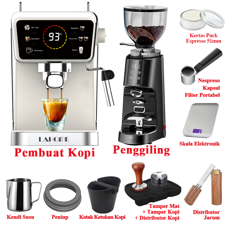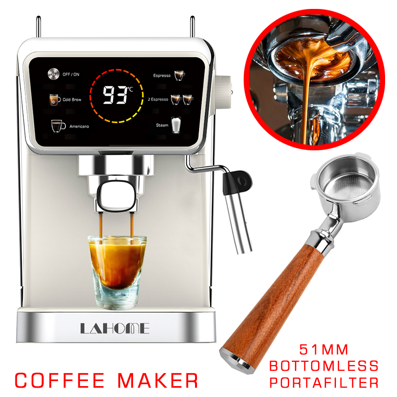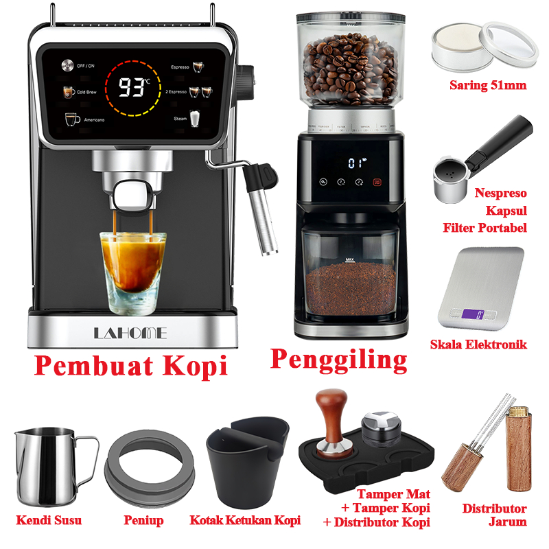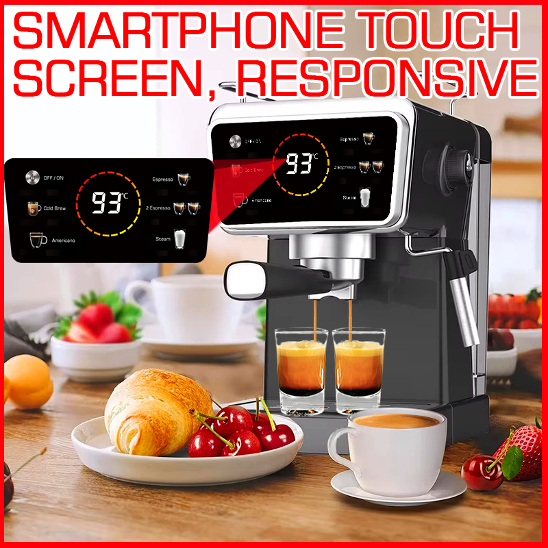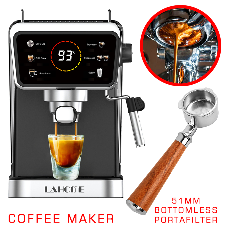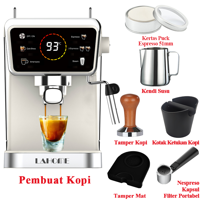 LAHOME 5 in 1 Mesin Kopi Espreso Otomatis 900W Seduh Dingin Panel Sentuh LCD Dengan Pembuih Susu Otomatis Mati 20 Bar Cerdas Digital Espresso Coffee Machine Hot & Cold Brew Americano Cappuccino, Latte, Macchiato, Mocha dan Teh
