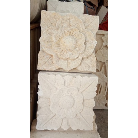 Batu Alam Ornamen Motif Bunga Ukuran 20 X 20 Cm