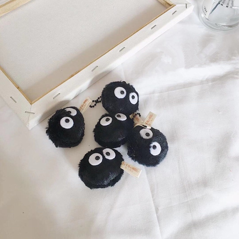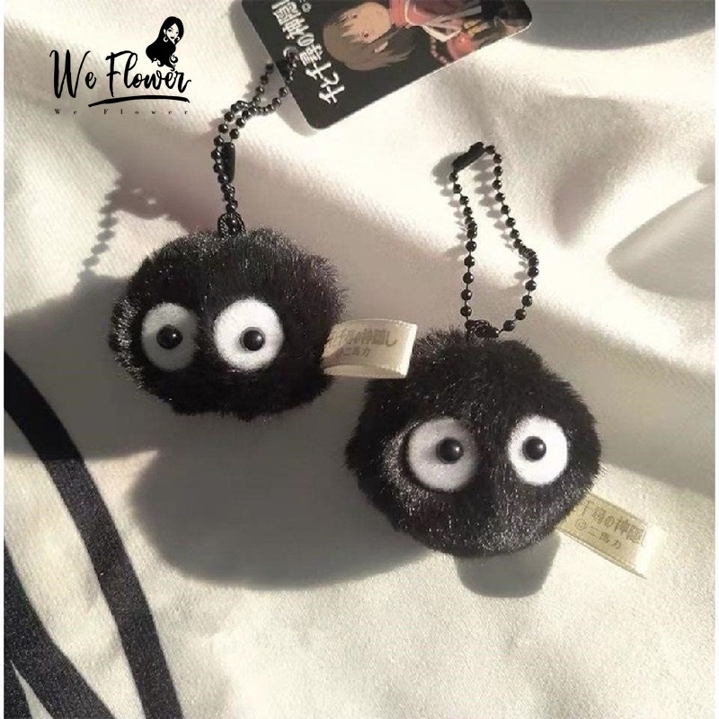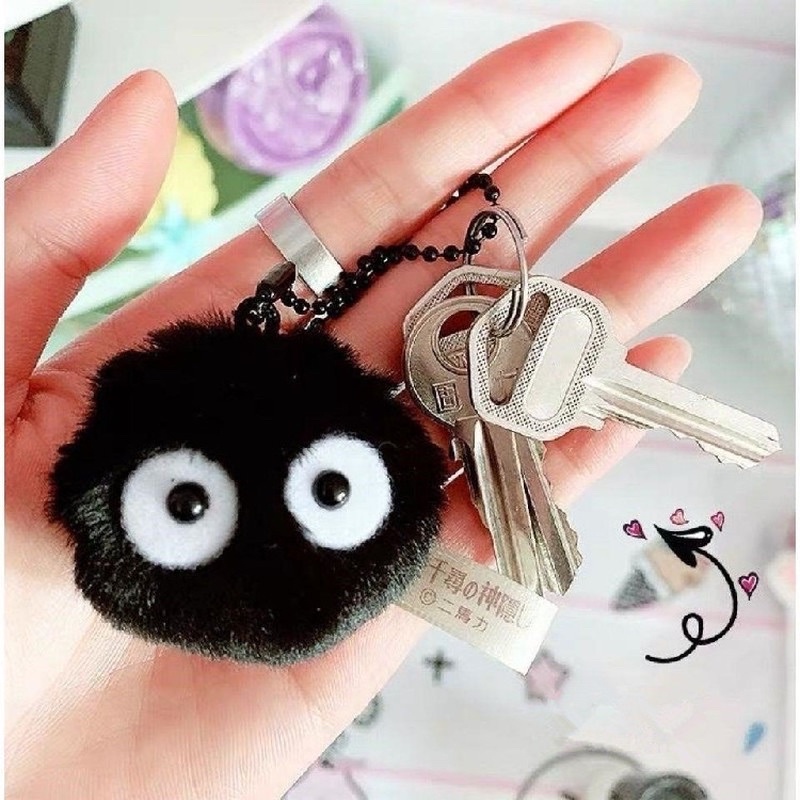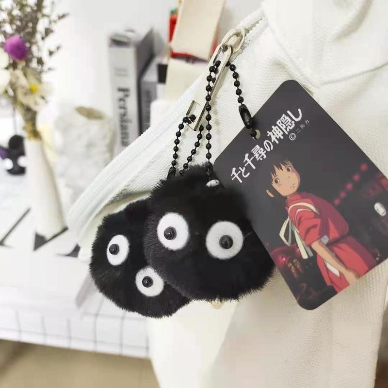 Gantungan Kunci Plush Bulu Bulu Hitam Cute Pom Pom Keychain Ganci Spirited Away Viral Ghibli