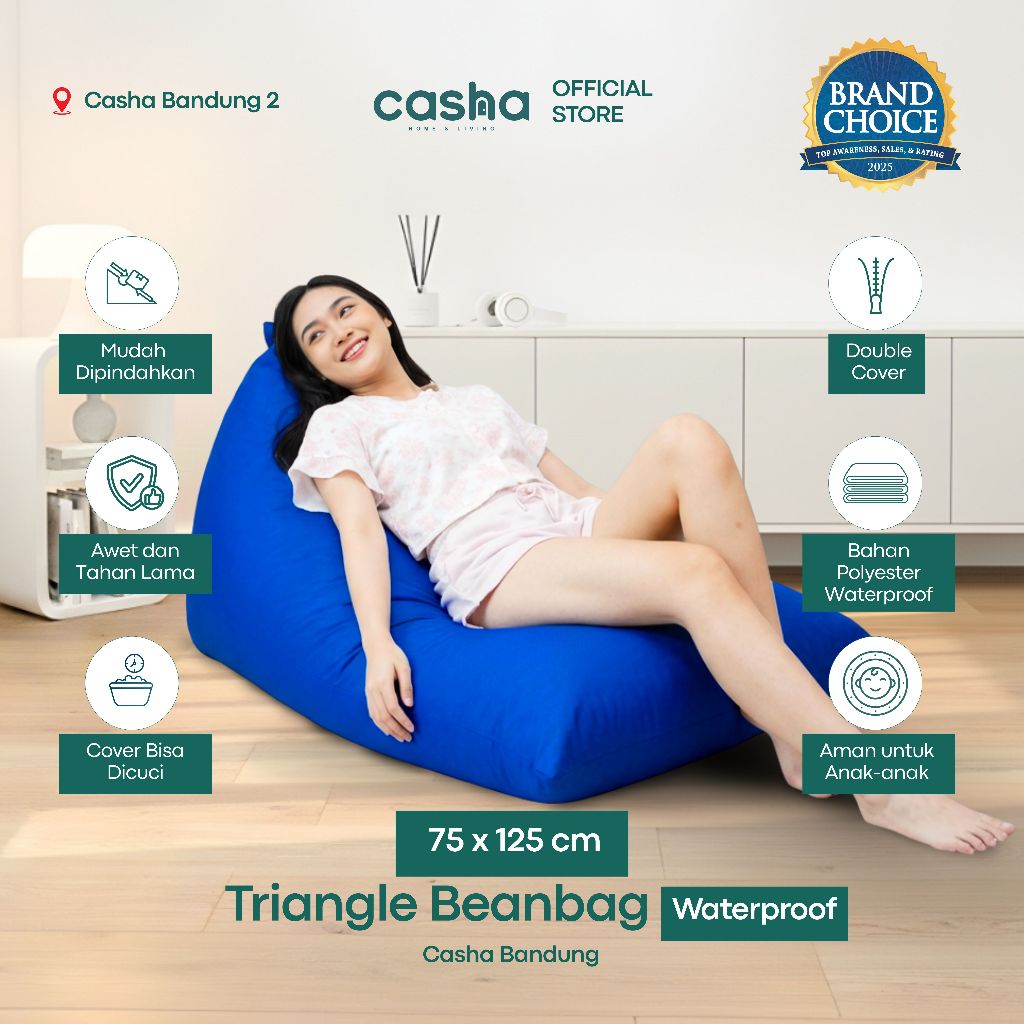 CASHA- Triangle 75×125 Bahan WATERPROOF PLUS ISI - Bean Bag Murah - Bean Bag Dewasa - Sofa Millenial - Sofa Minimalis