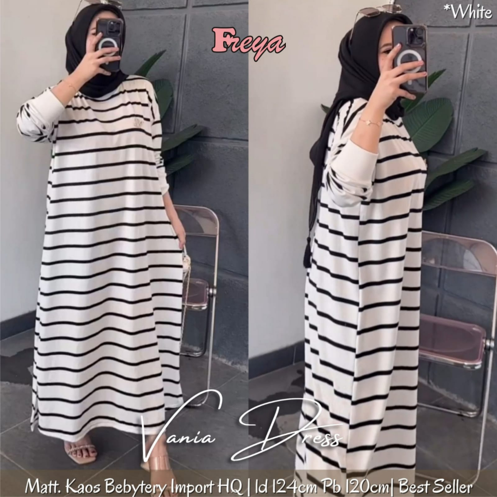 MIDI DRESS SALUR WANITA JUMBO TERBARU PAKAIAN WANITA BAJU DRESS GARIS GARIS JUMBO KOREAN STYLE LENGAN PANJANG