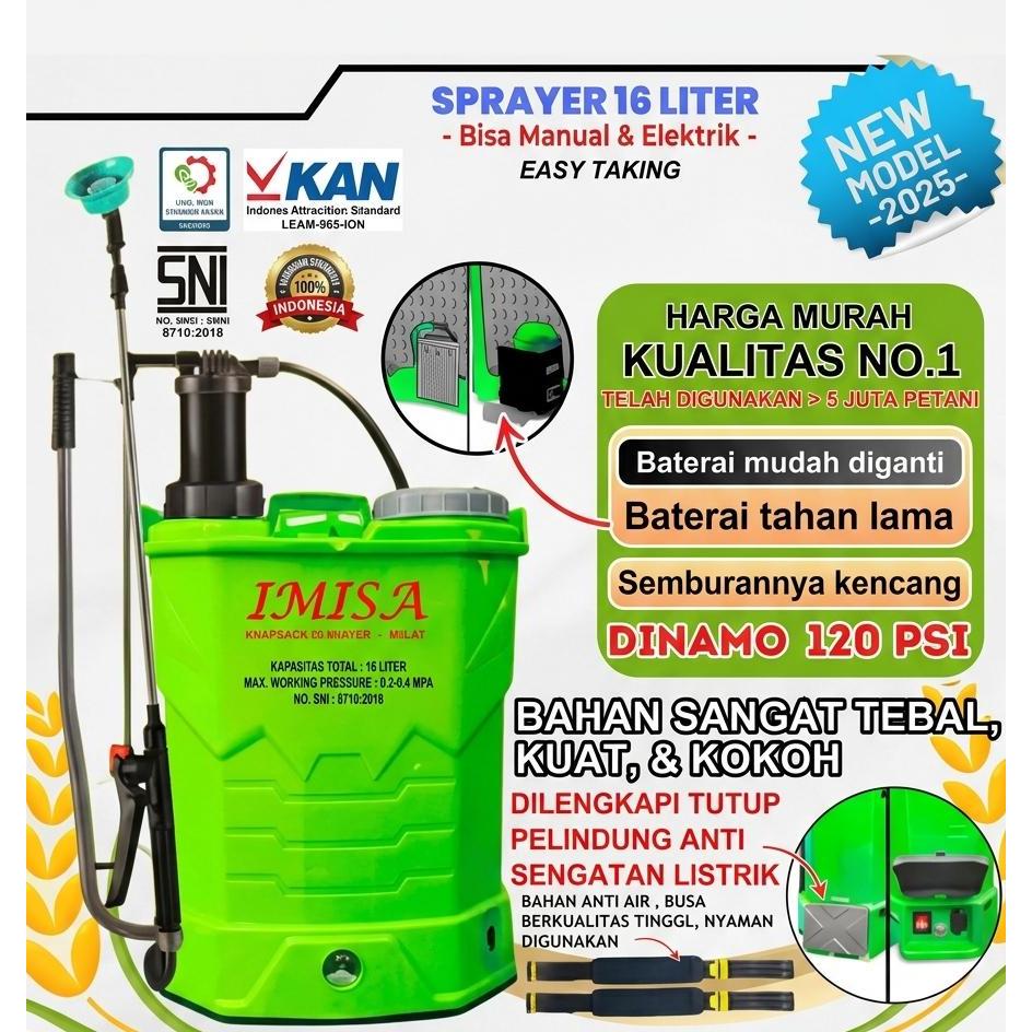 Pompa IMISA Sprayer Elektrik 16L SNI alat siram hama sprayer pertanian