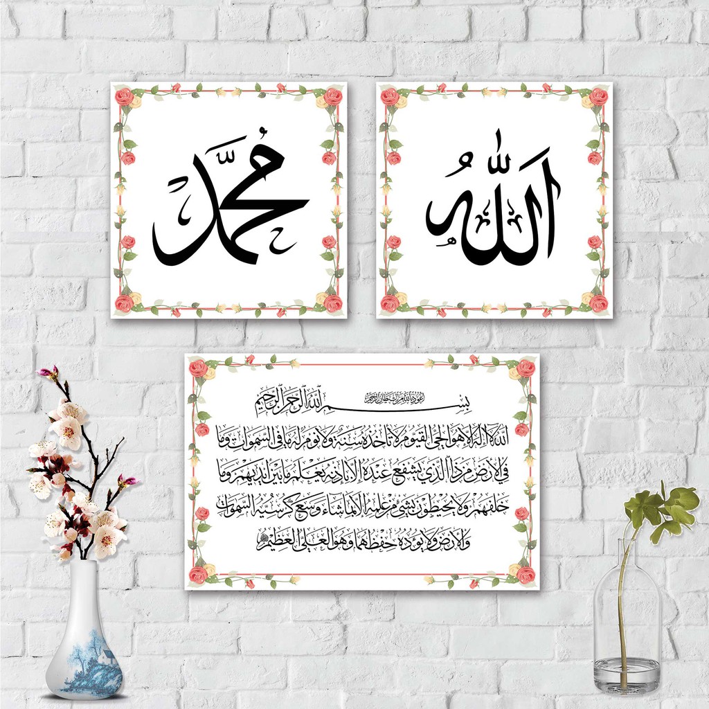 [Bisa COD] Hiasan Dinding Islami Poster Kayu Kaligrafi Allah, Muhammad, Ayat Kursi - PCT2