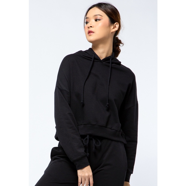 COLORBOX Crop Sweatshirt with Hoodies Black
