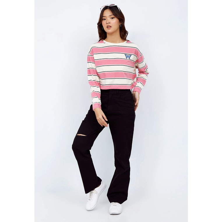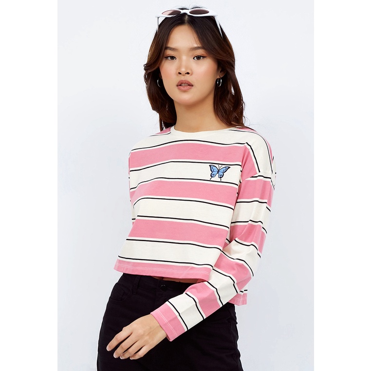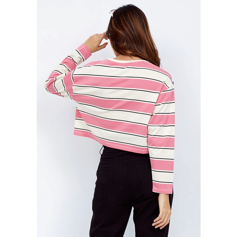 COLORBOX Graphic Stripe Loose T-shirt Pink