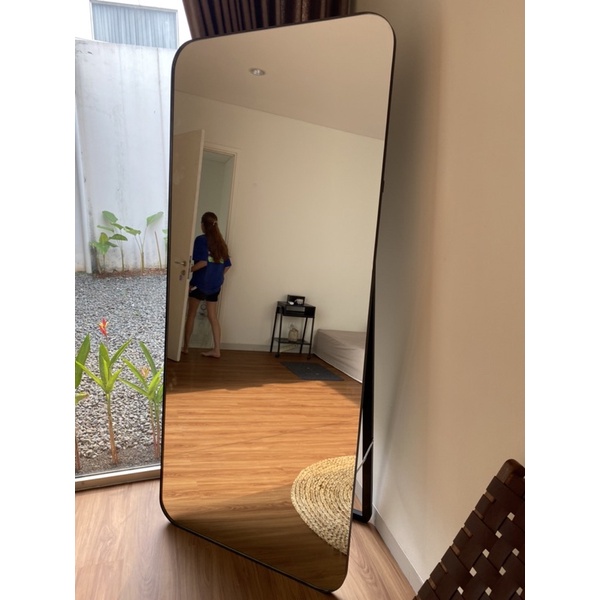Standing curve edge thin frame cermin hias