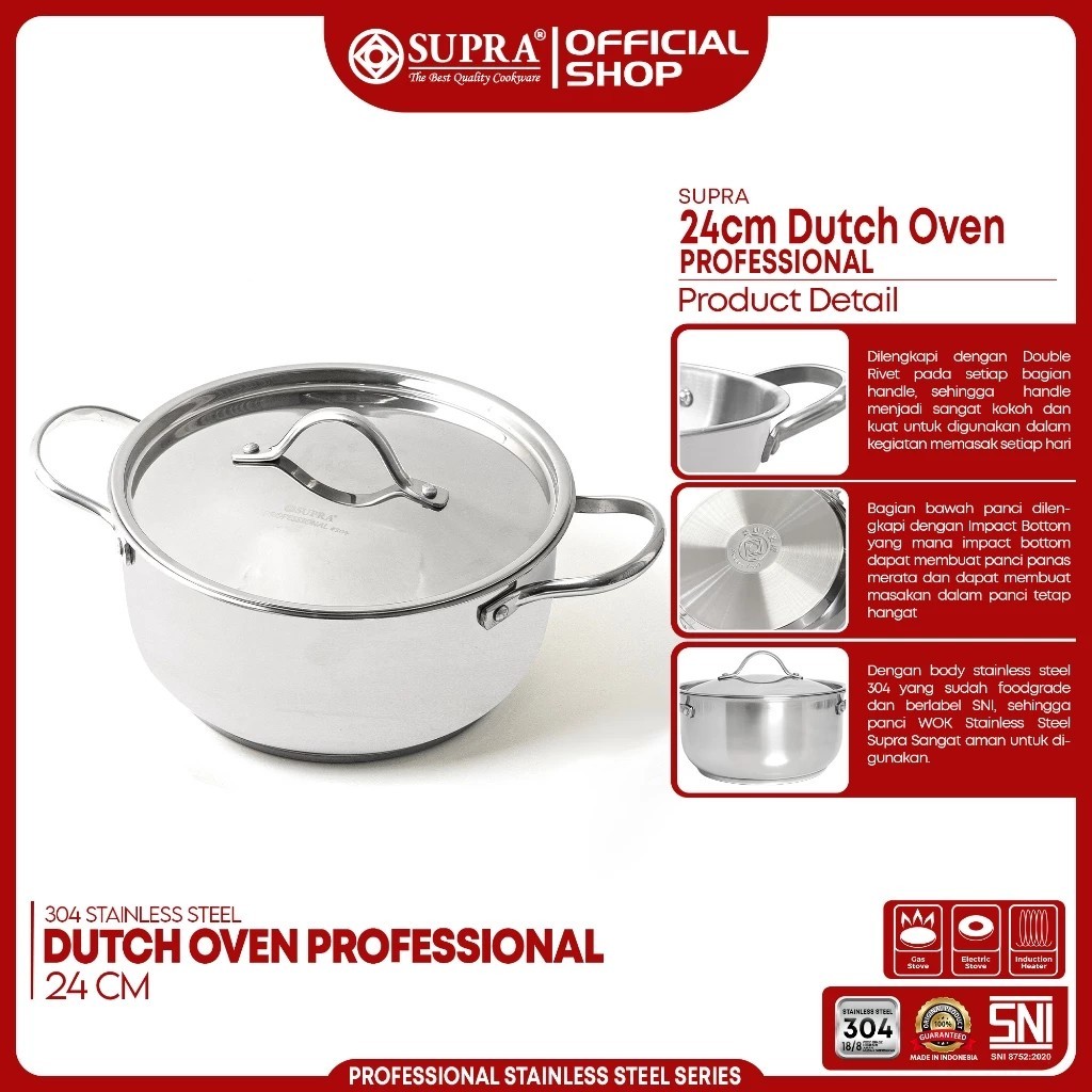 Panci Stainless Steel SUS 304 Dutch Oven 24 Cm Professional Series full stainless