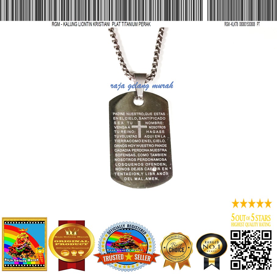 Raja Gelang Murah Kalung Liontin Kristiani plat Titanium asli Perak