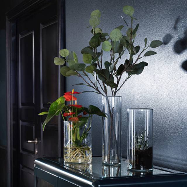 Vas Bunga Kaca Bening CYLINDER Vas Bunga set isi 3 Pcs dan 3 Ukuran