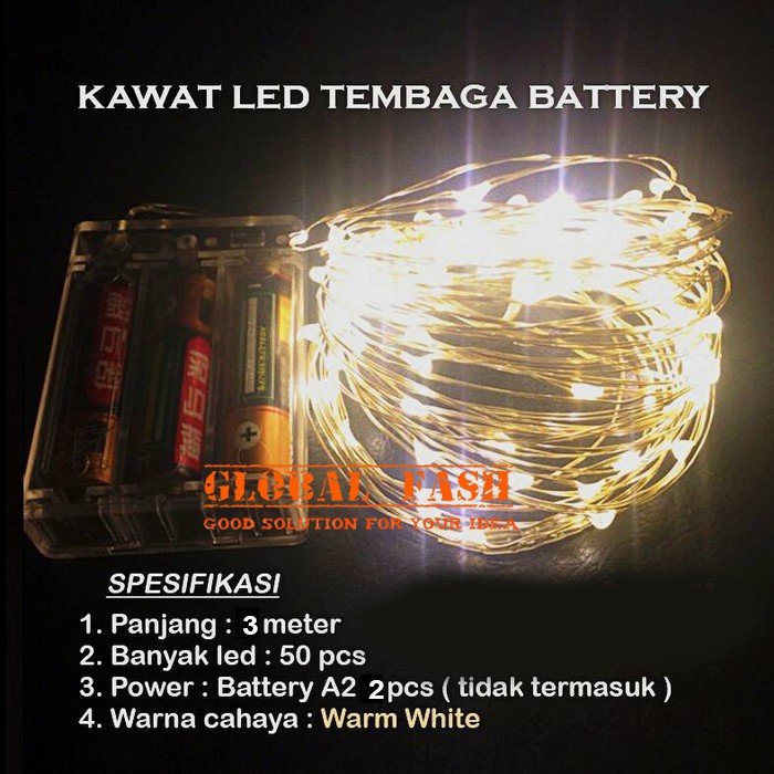 Lampu LED Warm White Baterai A2 / lampu Kawat Tembaga 3 meter / natal