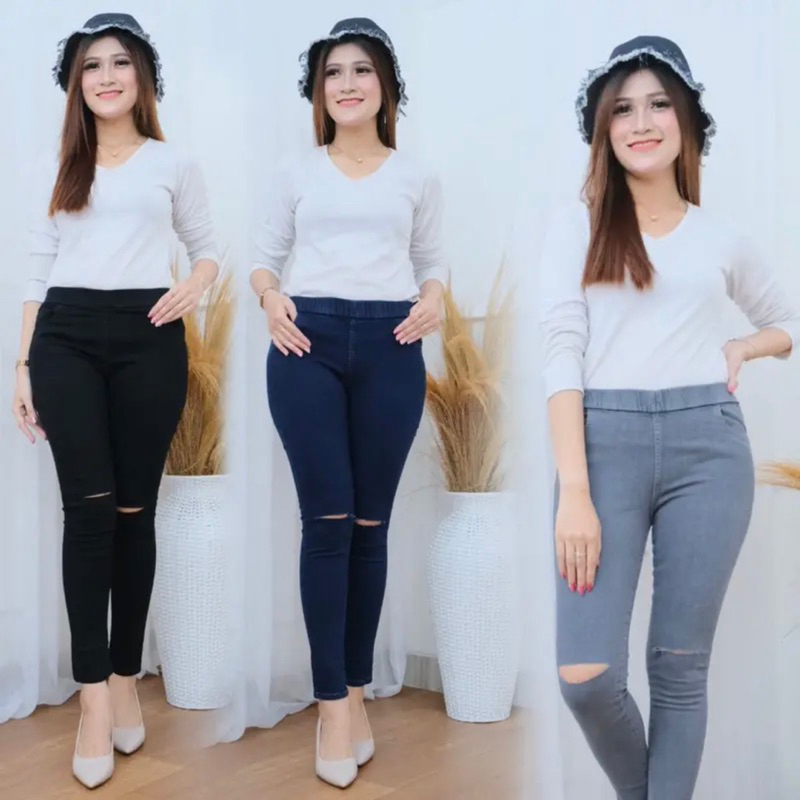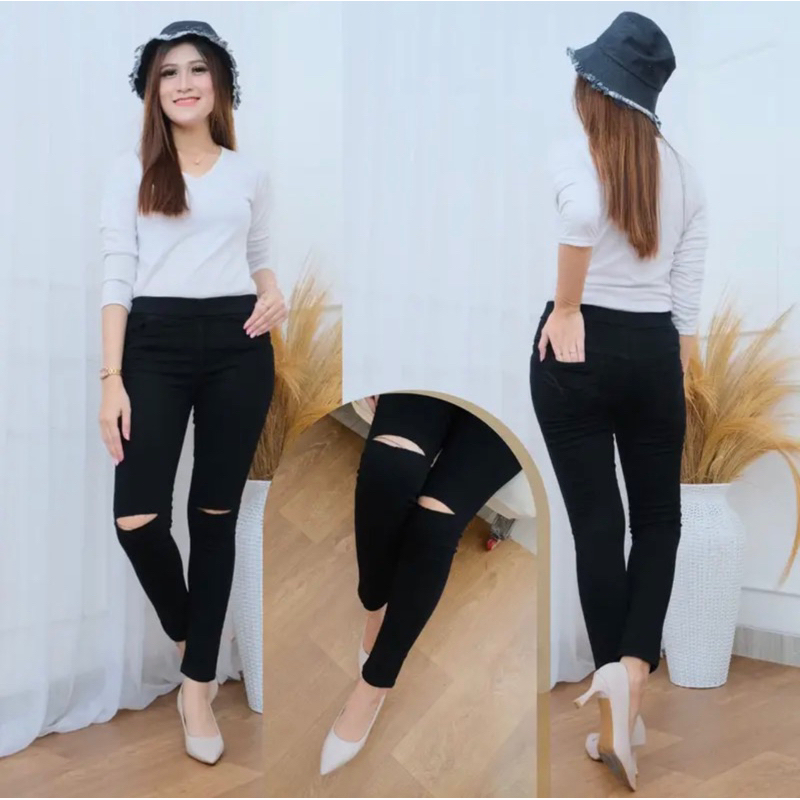 LEGGING JEANS SOBEK WANITA - JEGGING JEANS RIPPED KNEE 27-42