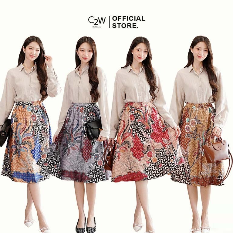 C2W Clothtowear Rok Batik Wanita All Size Satin Women's Skirt 674-SKR