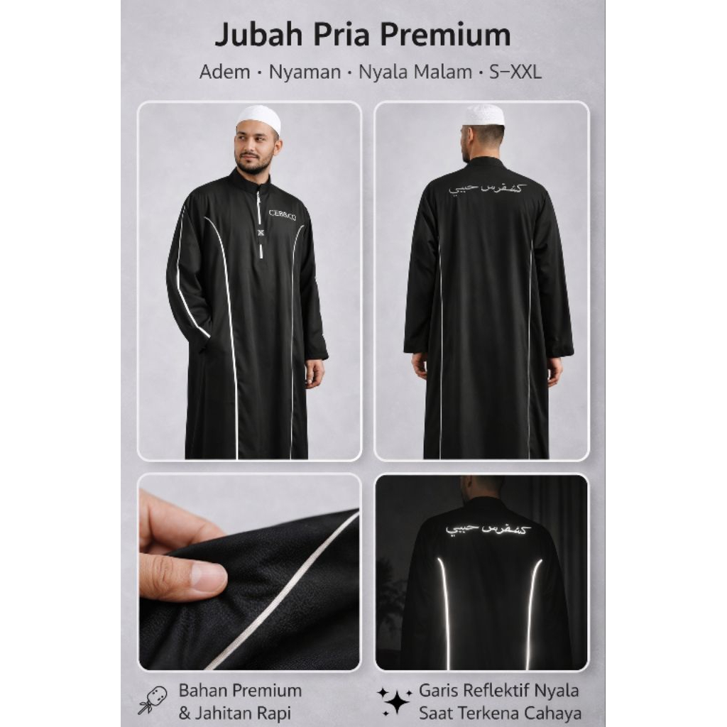 Jubah Pria Reflektif Premium | Adem & Nyaman | Nyala Saat Malam | S–XXL