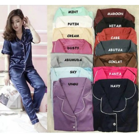 CUCI GUDANG Baju Tidur Piyama / Pajamas Wanita Dewasa CP Satin