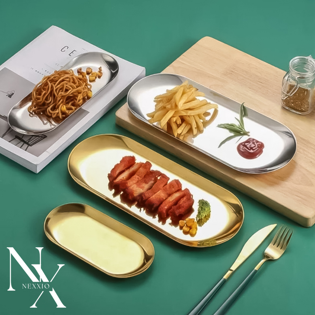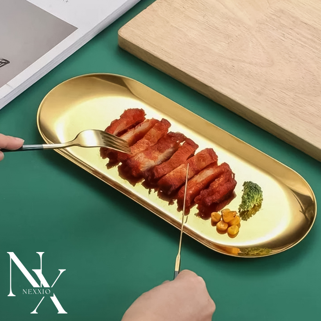 Nexxio Nampan Gold Dekorasi / Nampan Oval Emas / Tray Gold Oval Pajangan Dekorasi rumah.