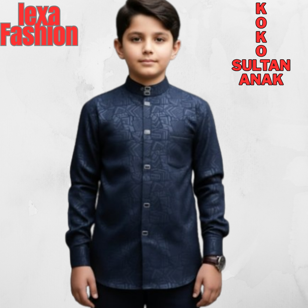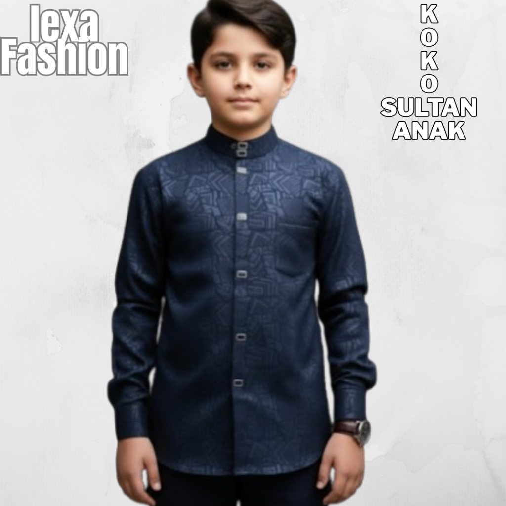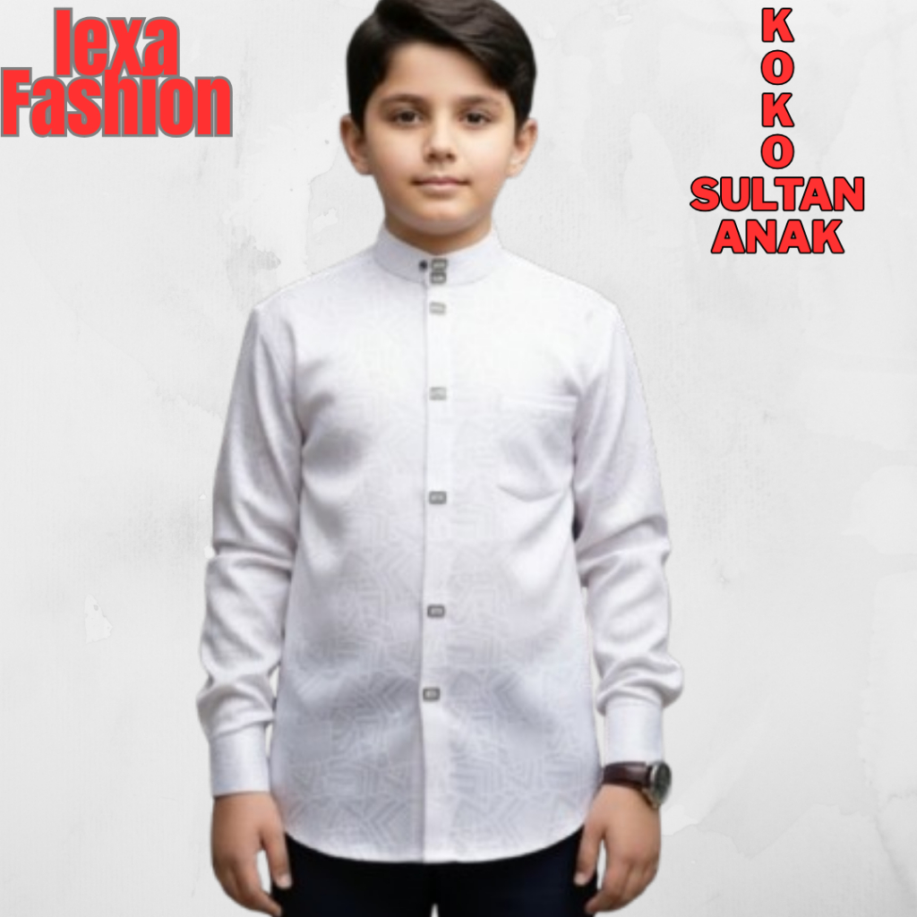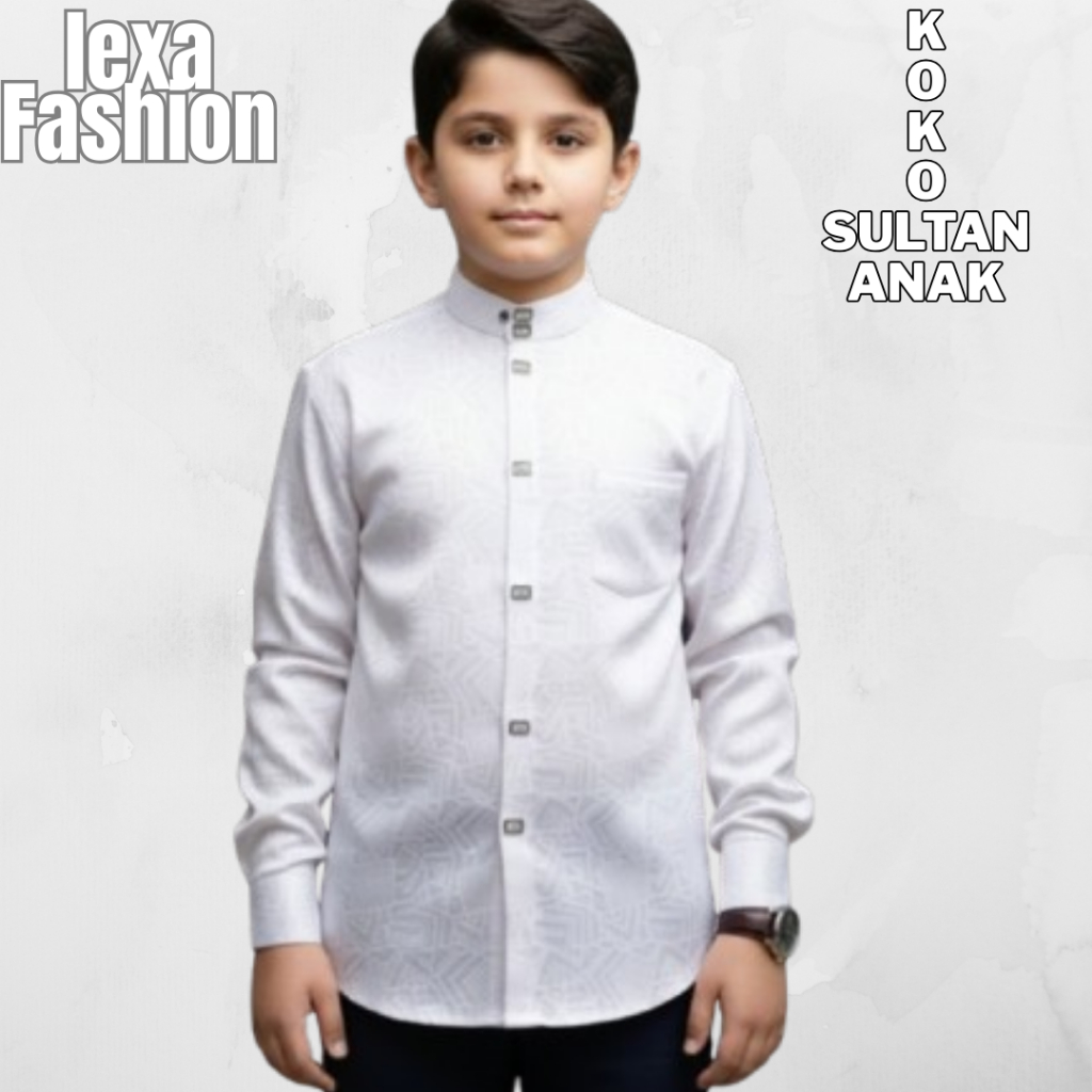 Baju Koko SULTAN Anak Embos Wolfis Lengan Panjang Putih Hitam Coksu Navy