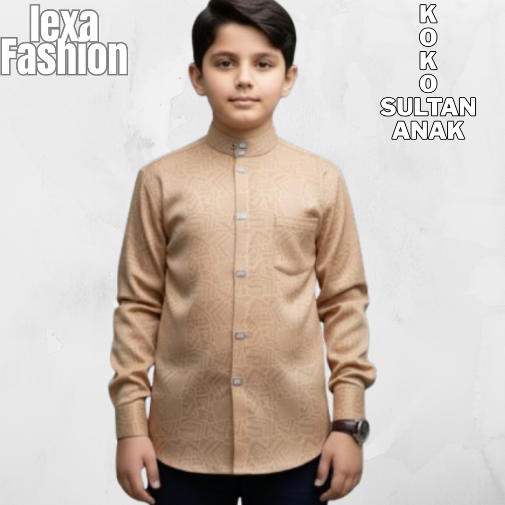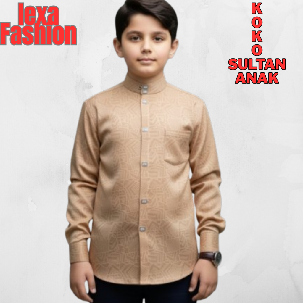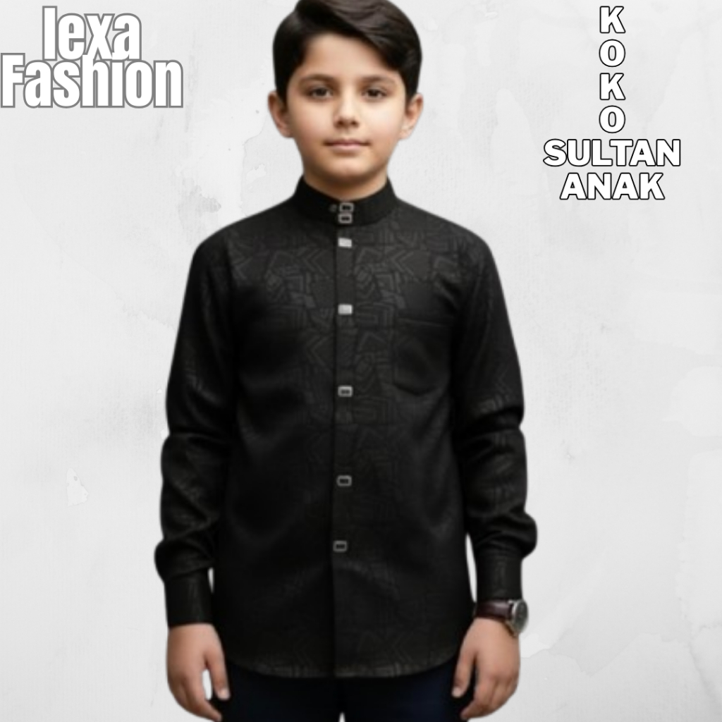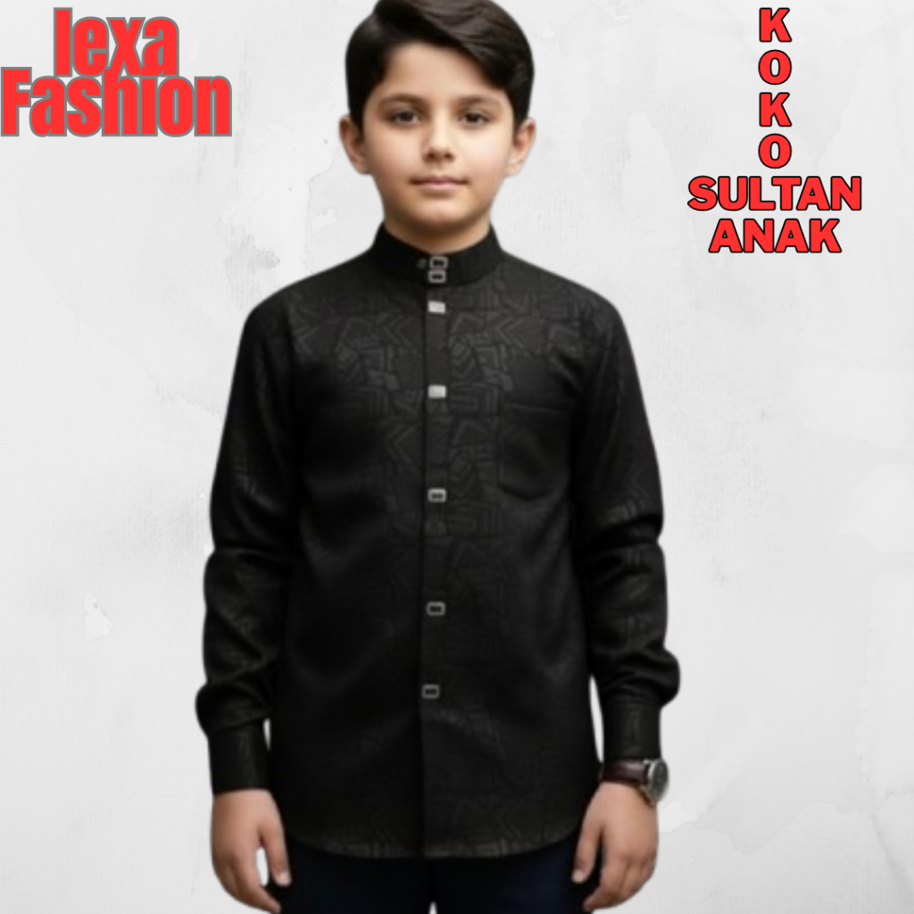 Baju Koko SULTAN Anak Embos Wolfis Lengan Panjang Putih Hitam Coksu Navy