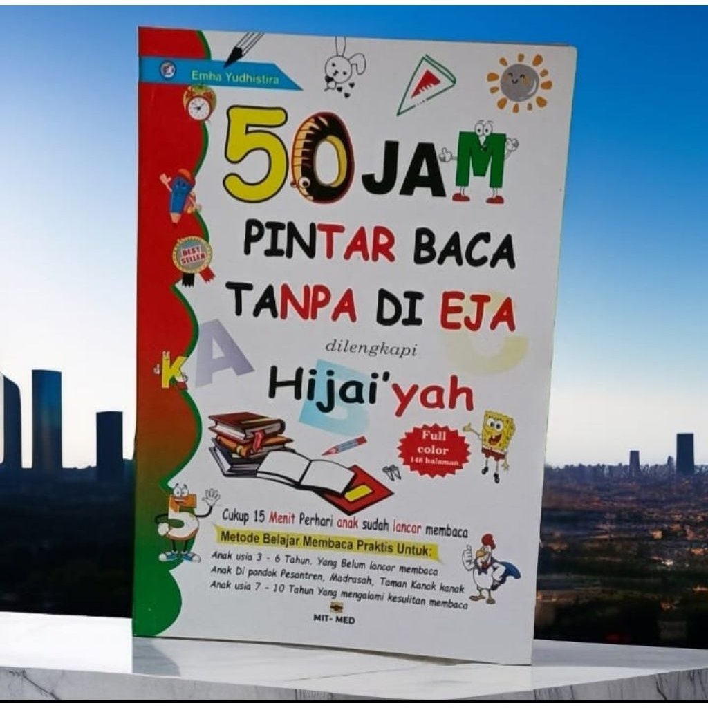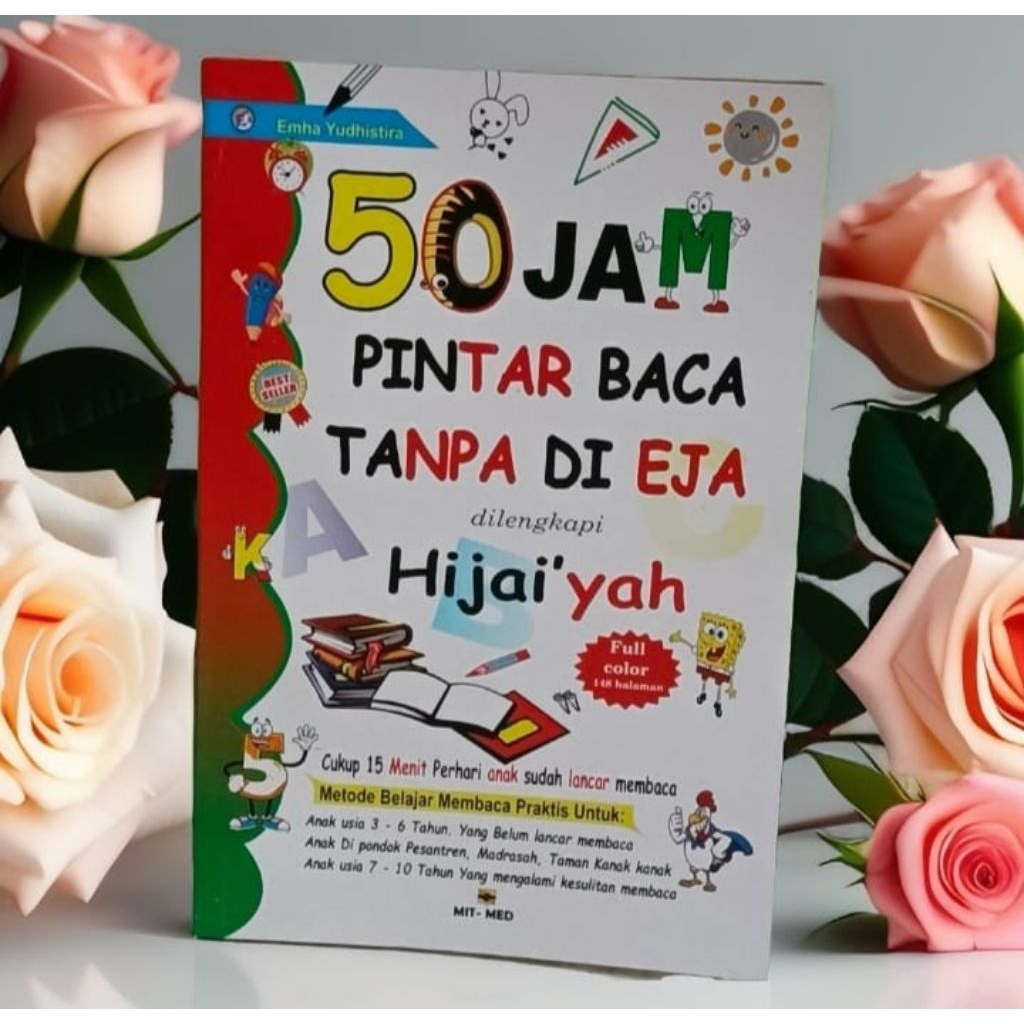 Buku 50 jam pintar baca tanpa di eja dilengkapi huruf hijaiyah full warna bonus mewarnai