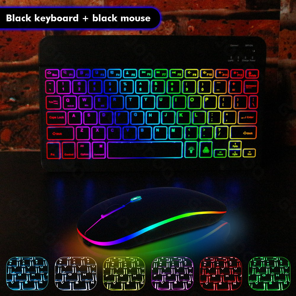 Keysky 10 inch Mini Nirkabel Bluetooth Keyboard + Mouse Combo USB Kantor Diam Klik Laptop Bluetooth Keyboard Kombinasi untuk Ponsel Android Windows Tablet