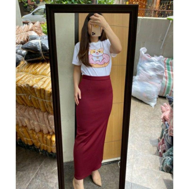 ROK KANTOR SPAN SCUBA PANJANG / ROK PENCIL SCUBA