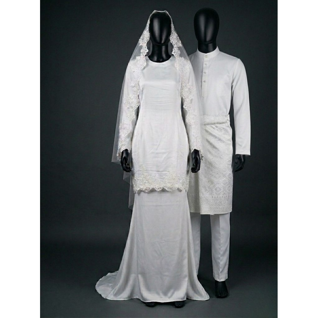 Ready stock set celana dan baju melayu + songket pria lebar 1.5 meter laki laki putih tulang baju akad nikah bahan premium |baju dress wanita pengantin akad gaun pengantin gaun akad lengkap kerudung nikah wedding veil panjang istimewa