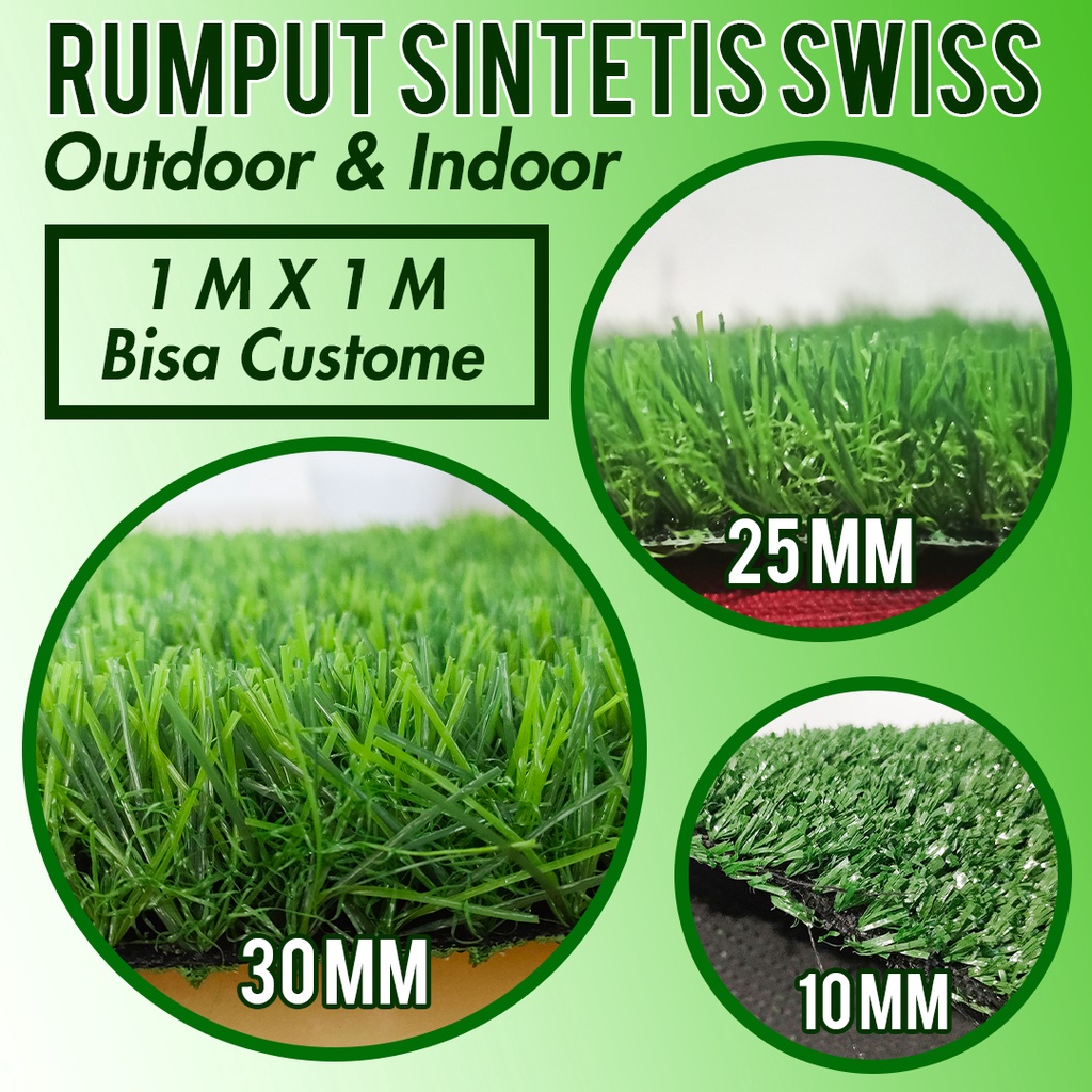 Rumput Sintetis Swiss Outdoor Indoor 10mm, 25mm, 30mm | Ukuran 1mx1m dan (BISA CUSTOME)