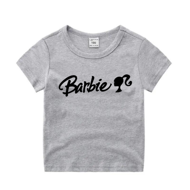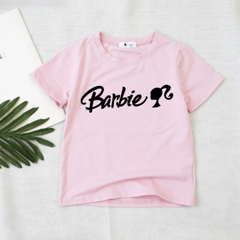 Baju kaos anak perempuan Tshirt anak cewek lengan pendek tulisan barbie bayangan kepala