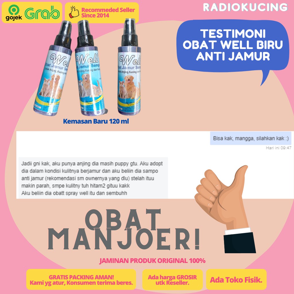 Well Obat Jamur Biru Semprot 120 ml Anti Gatal Penyakit Kulit Aman Terjilat Kucing Anjing [ JUWIES RADIO KUCING ]