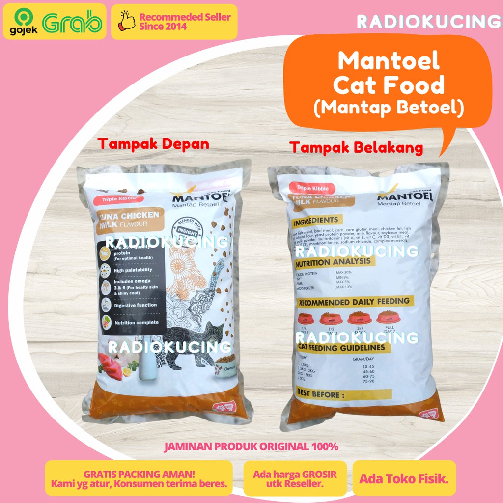 Mantoel Cat Food 1 Kg Rasa Tuna Chicken Milk Adult Kitten All Stages Triple KIbbles [ JUWIES RADIO KUCING ]