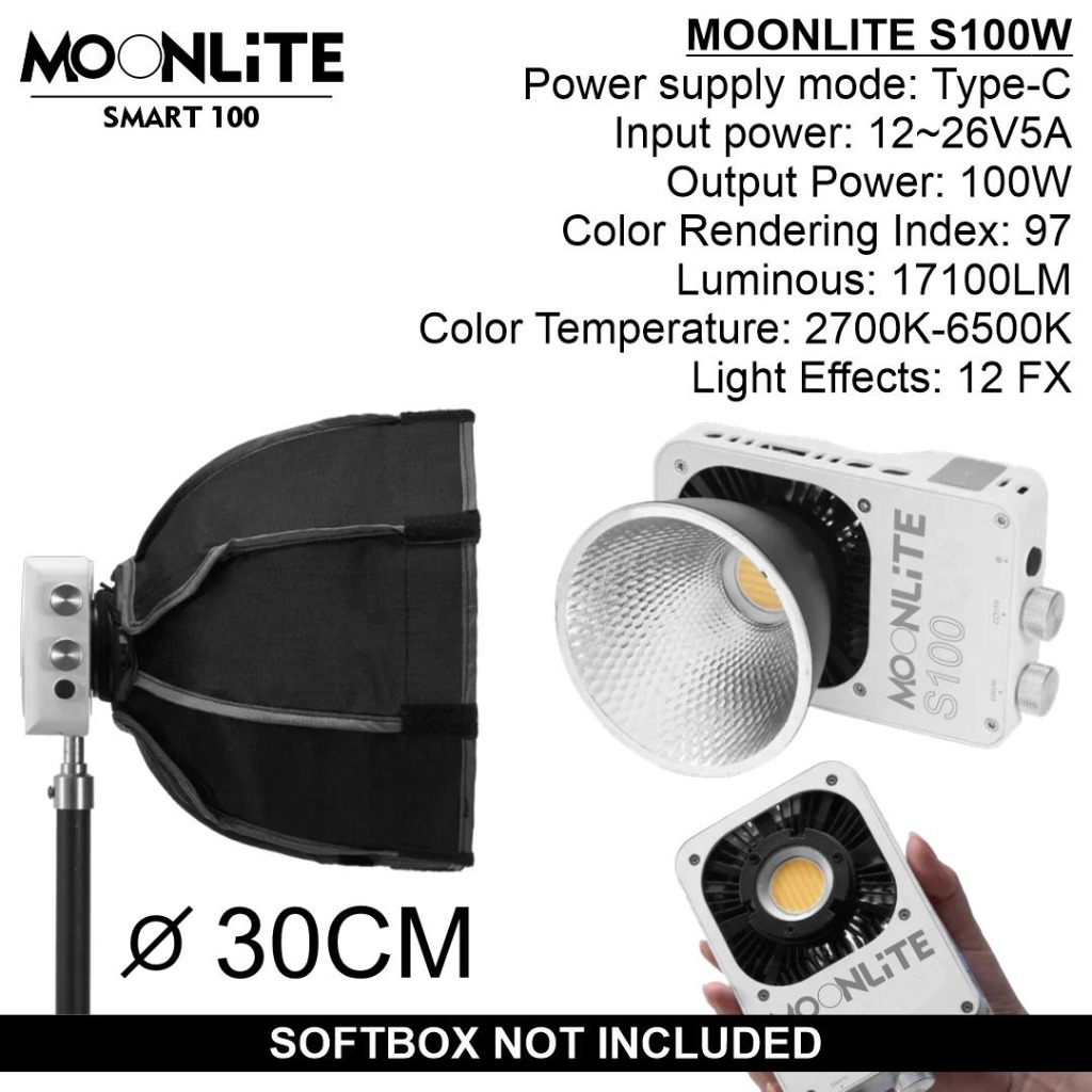 MOONLITE S100 LED POCKET LIGHT VIDEO PHOTOGRAPHY 2700K-6500K 100W