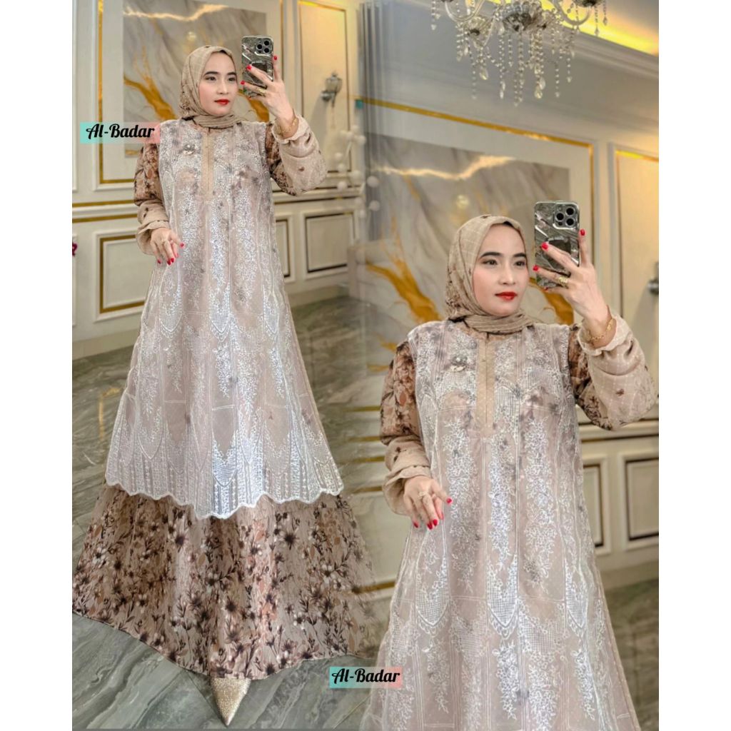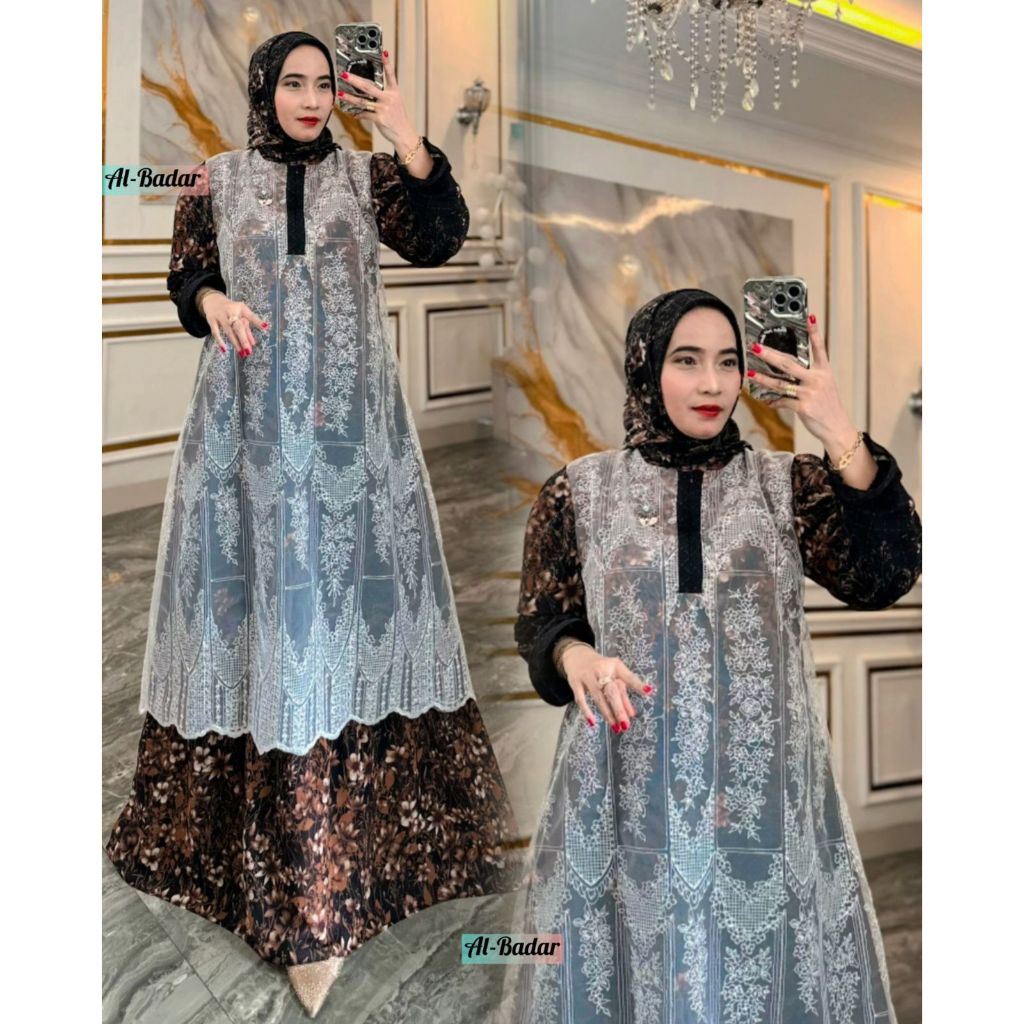 GAMIS SET HIJAB CERUTY ETNIK MIX BRUKAT FULL BODY