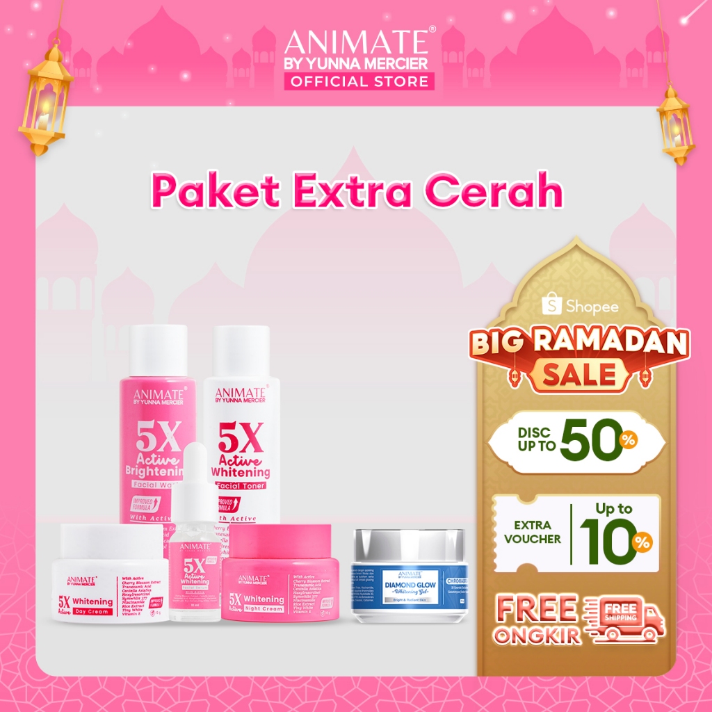(Paket Extra Cerah) Animate 5x Active Whitening Series 5in1 + Diamond Glow Whitening Gel
