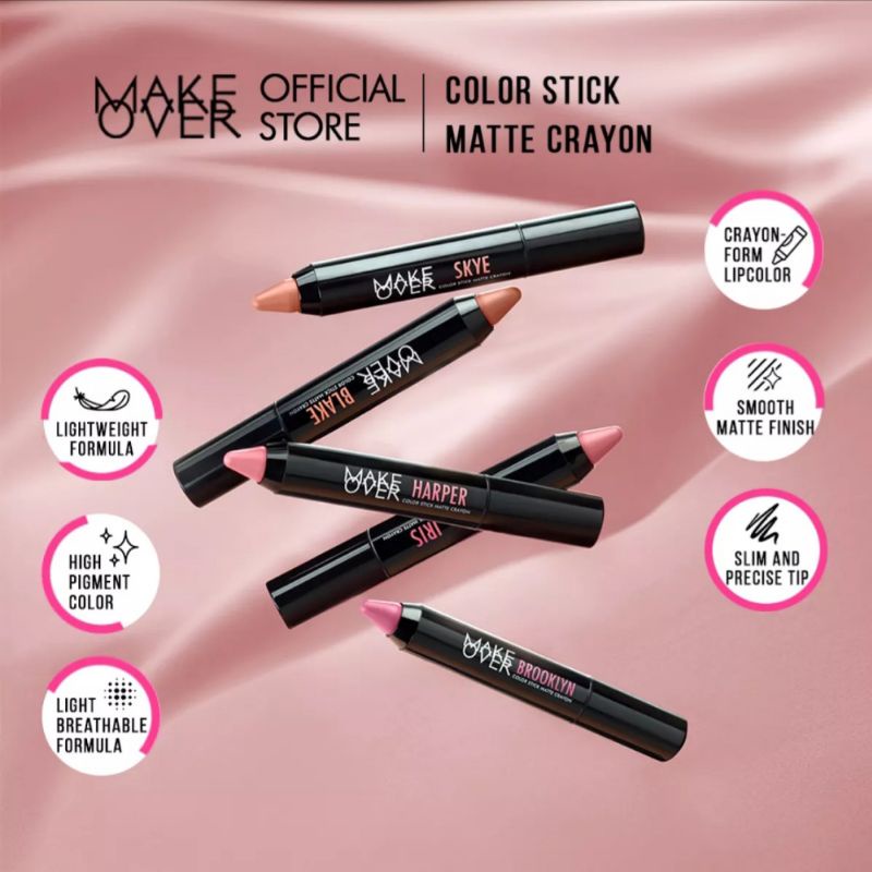 MAKE OVER COLOR STICK MATTE CRAYON LIP CRAYON LIPMATTE LIPSTICK LIPSTIK MAKEOVER ORIGINAL 2.6 GR