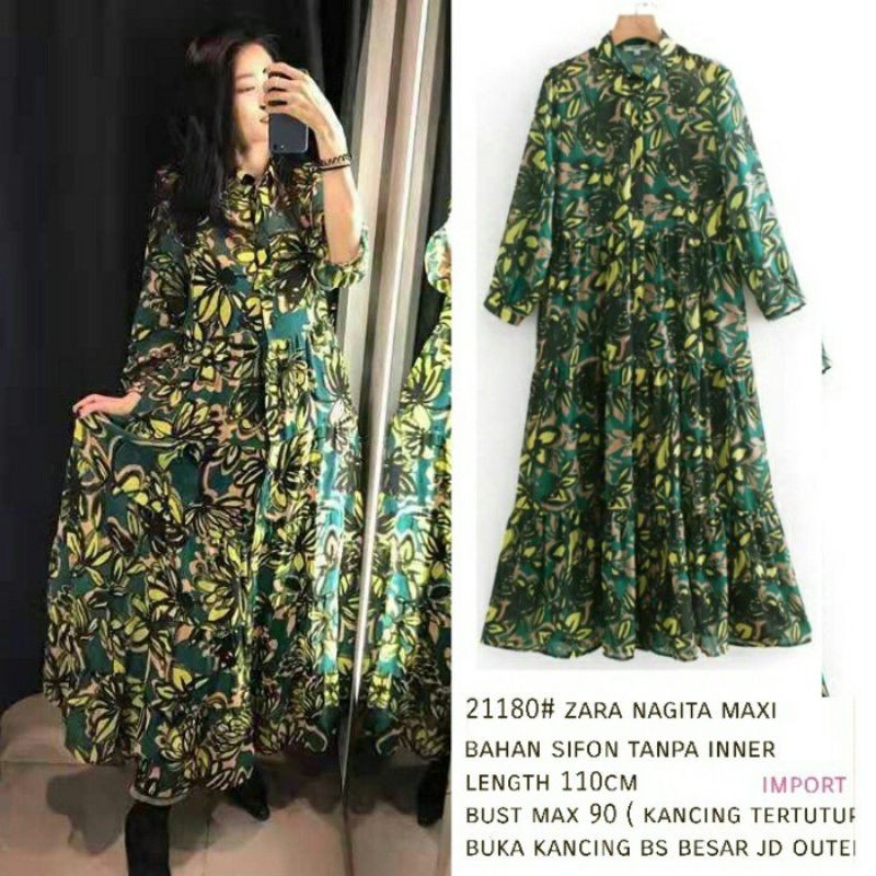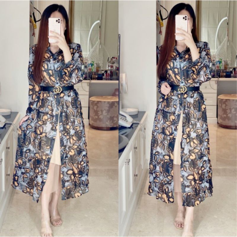 Terbaru LONG TUNIK IMPORT OUTER CERUTY ZARA NAGITA SLAVINA IMPORT BANGKOK MOTIF FLORAL DAUN