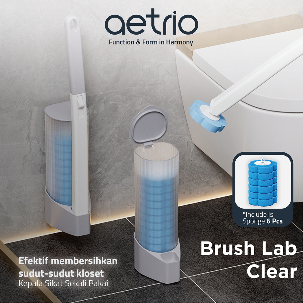 AETRIO Brush Lab Clear - Sikat Toilet Higienis Sekali Pakai | Include Isi Busa 6 pcs | Desain Nyaman dan Mudah Digunakan