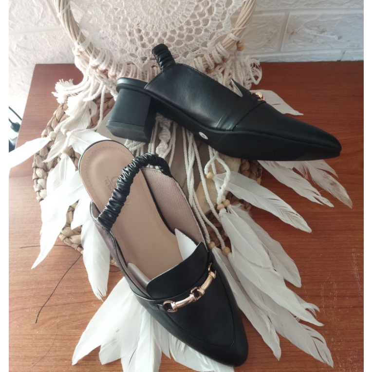 Original, Sepatu Kerja Wanita Semi Formal Ukuran Jumbo 41-45 Pantofel Kantoran Hak Tahu Kulit Krem Kasual Kaki gemuk Jumbo Big Size 44