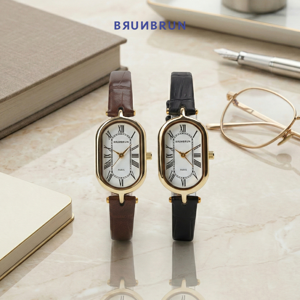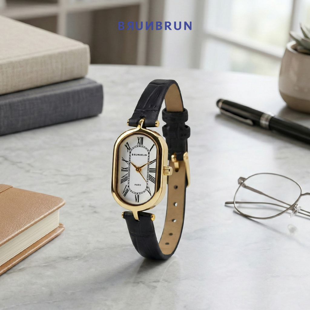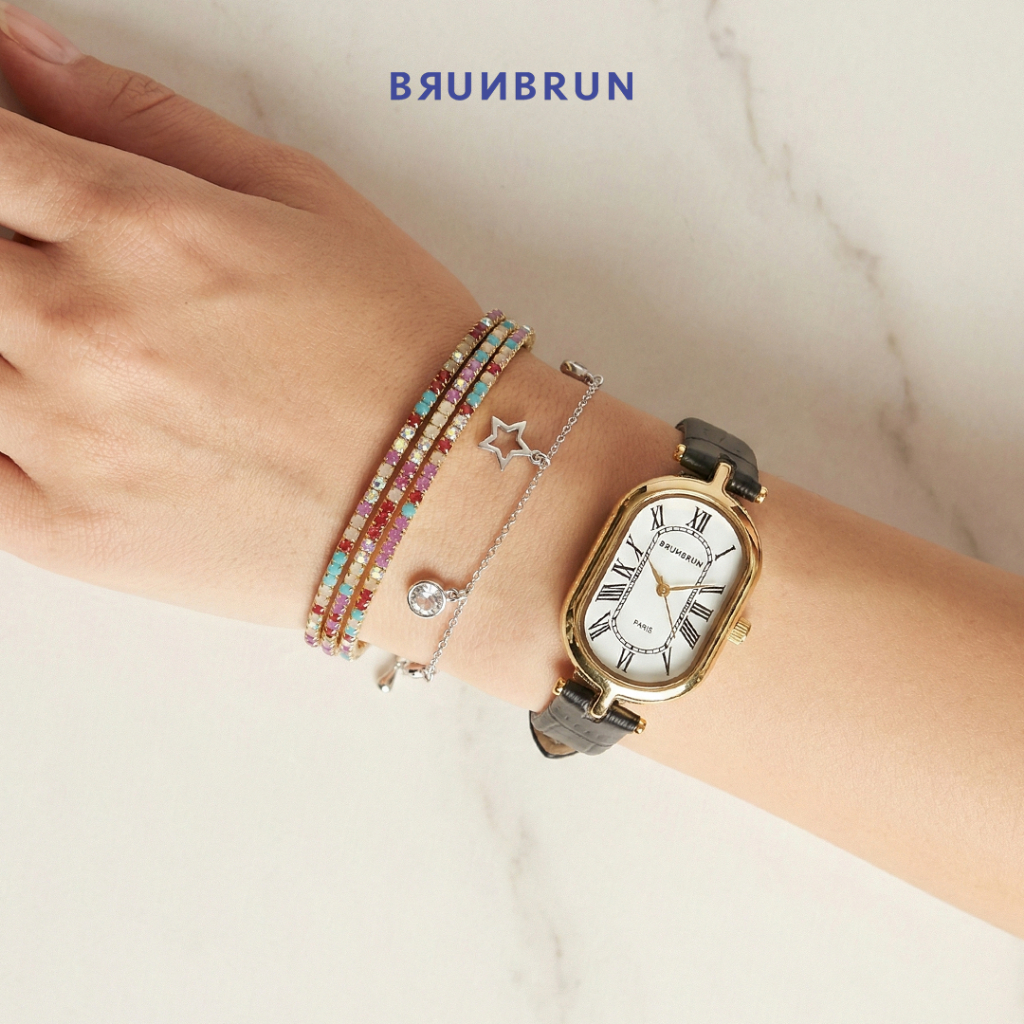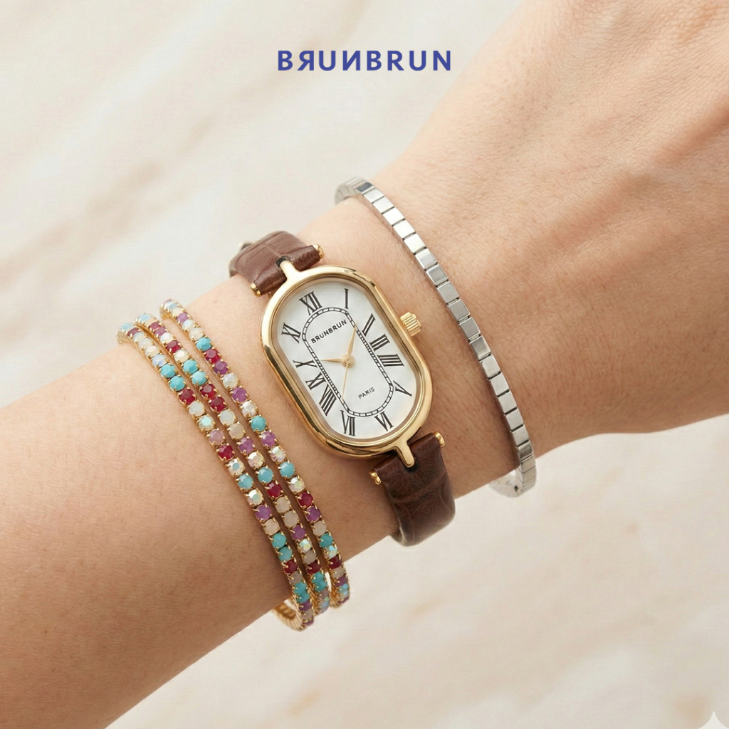 [4.4 SPECIAL PRICE] Brunbrun Paris Jam Tangan Wanita Classic Rectangular Leather Croco Vintage Tank Style Watch Elegant - Vie Watch