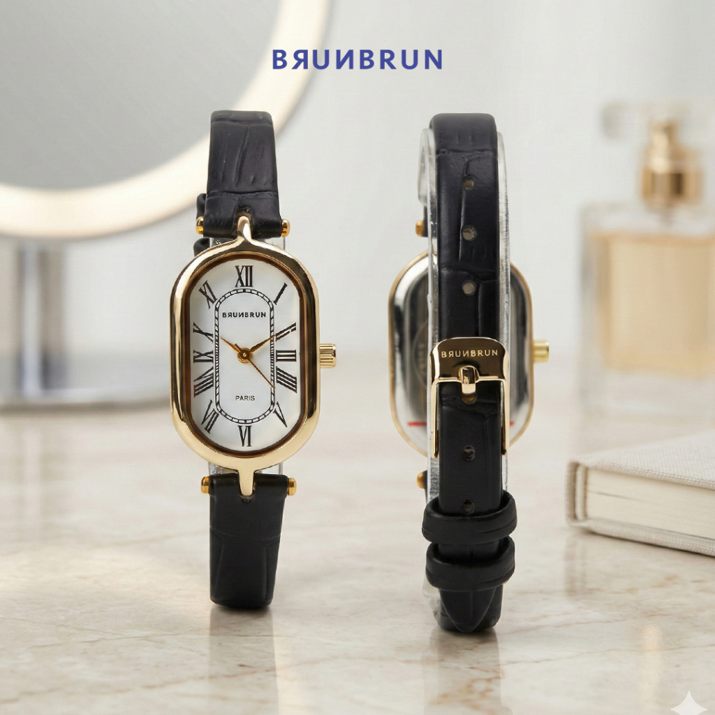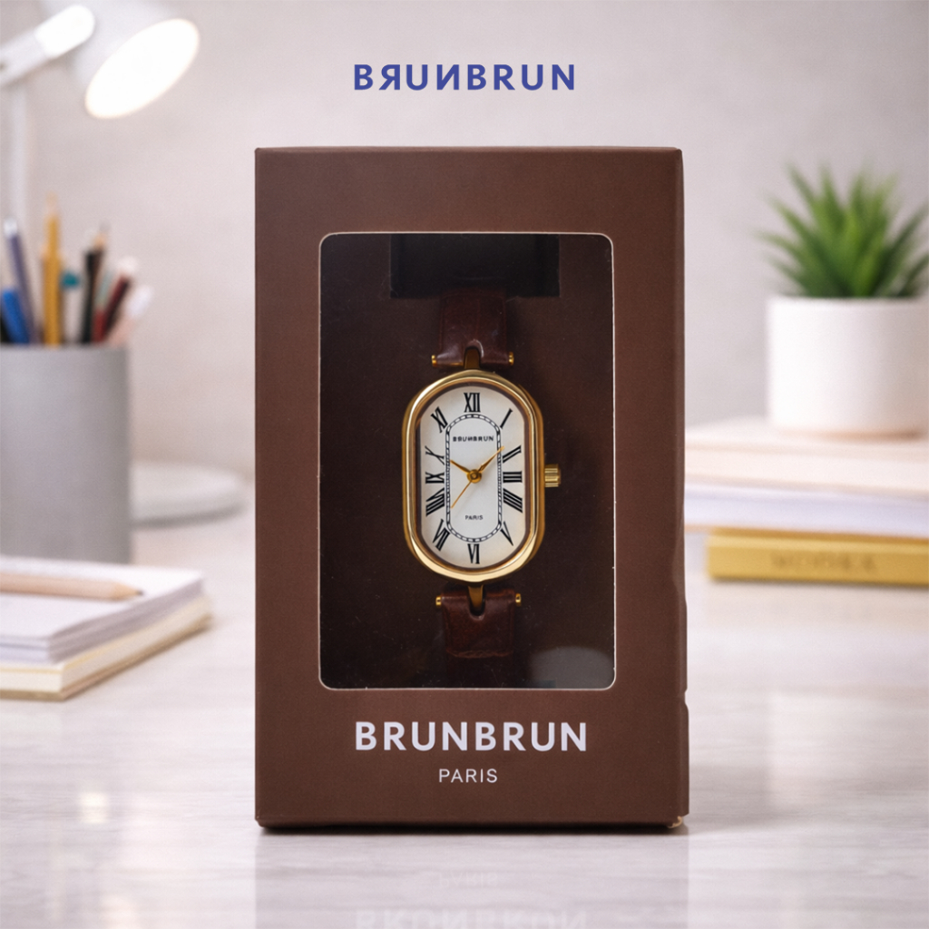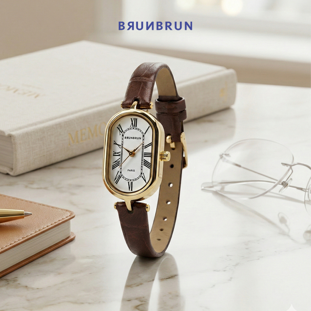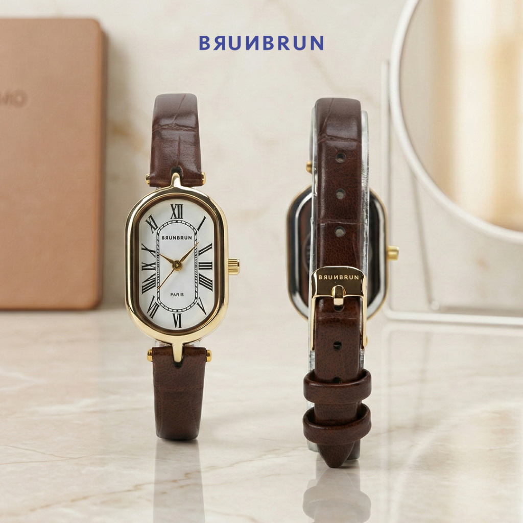 [4.4 SPECIAL PRICE] Brunbrun Paris Jam Tangan Wanita Classic Rectangular Leather Croco Vintage Tank Style Watch Elegant - Vie Watch