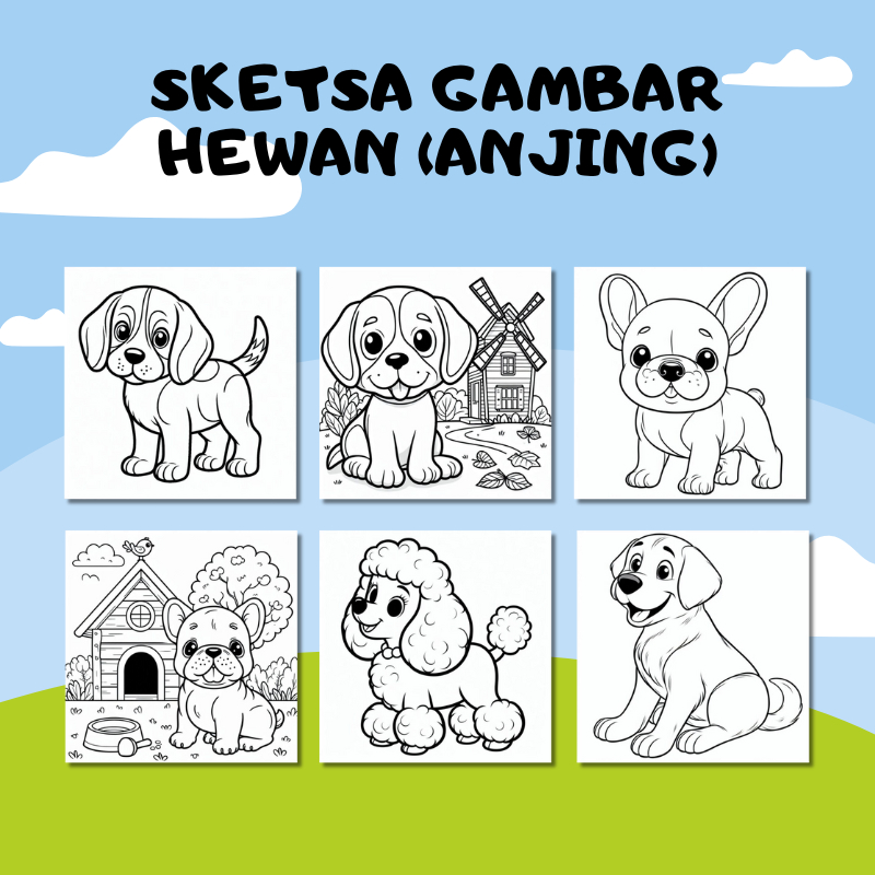 Sketsa Gambar Mewarnai Untuk Anak TK dan Paud Tema Anjing (Random)