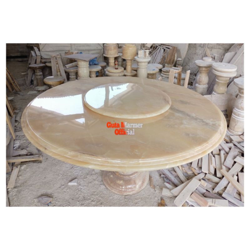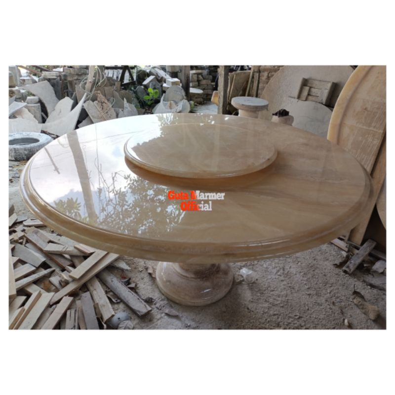 Meja Makan Bundar + Putar Atasnya Batu Onix Motif Glosy Mengkilat