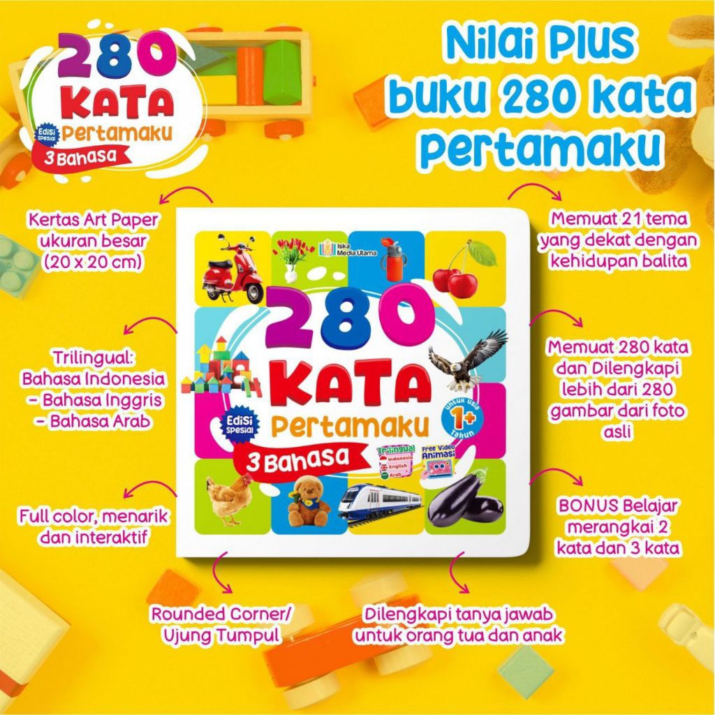 280 Kata Pertamaku untuk Usia 1+: buku edukasi favorit bikin tahap belajar Pertama si bayi dalam Mengenal kata menjadi lebih menyenangkan dan seru penuh petualangan~ Winonabooks Buku Anak × Iska