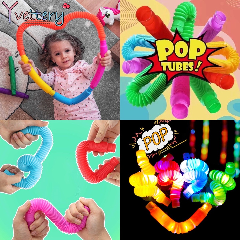 Mainan Anak Tabung pop R Luminous Pereda Stres Untuk anak / Dewasa Dekompresi Teleskopik Warna-Warni Untuk Hadiah Ulang Tahun Anak-anak Murah