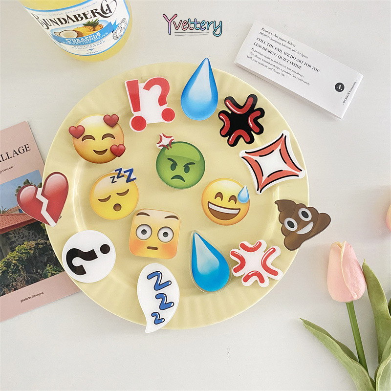 Cod Emoji Marah Tetesan Keringat Senyap Jepitan Keringat Akrilik Jepitan Rambut Jepitan Samping Jepitan Rambut Tetesan Air-Yy