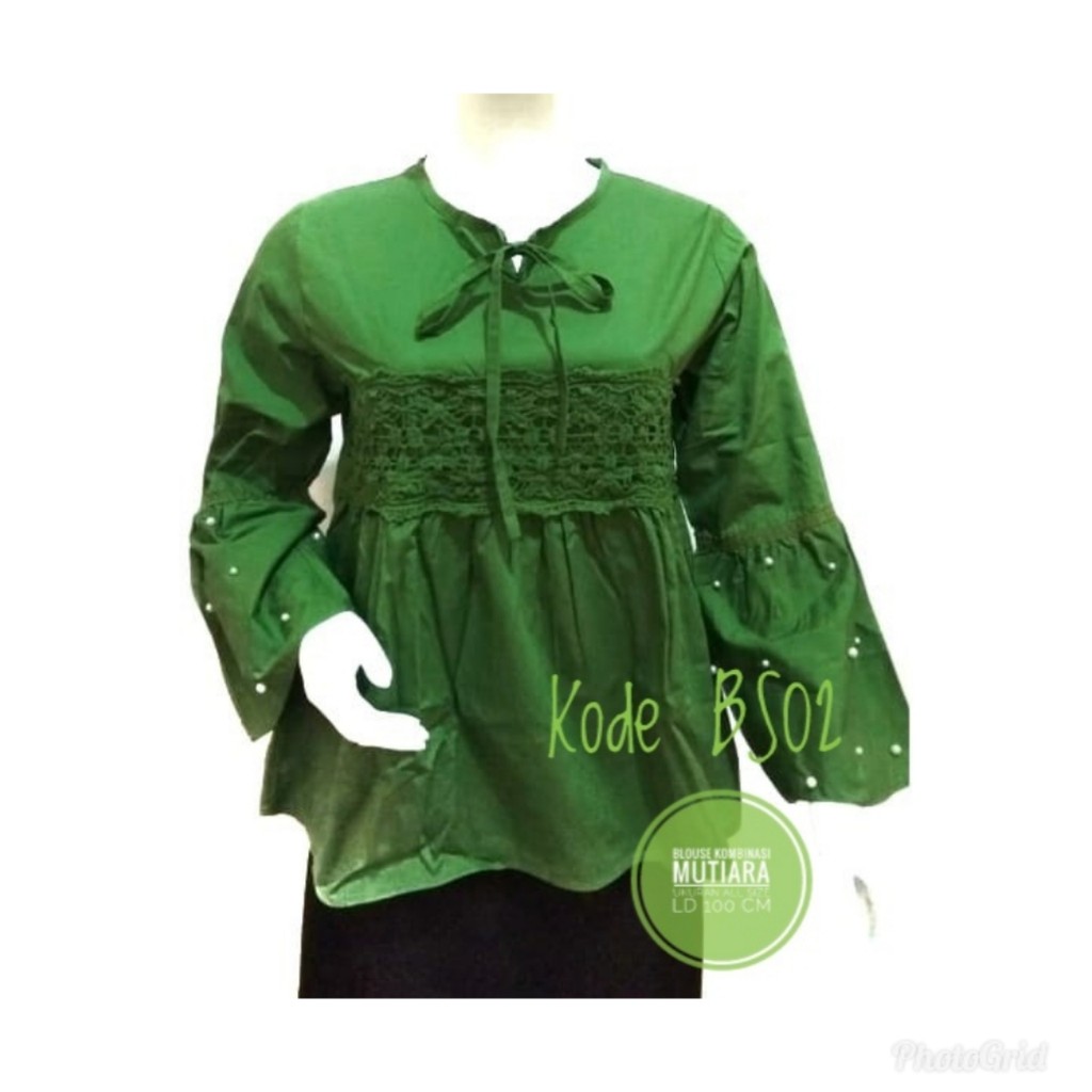 Kemeja Mutiara dilengan bawah Bahan Katun kombinasi renda bagian tengah bagus WSJ