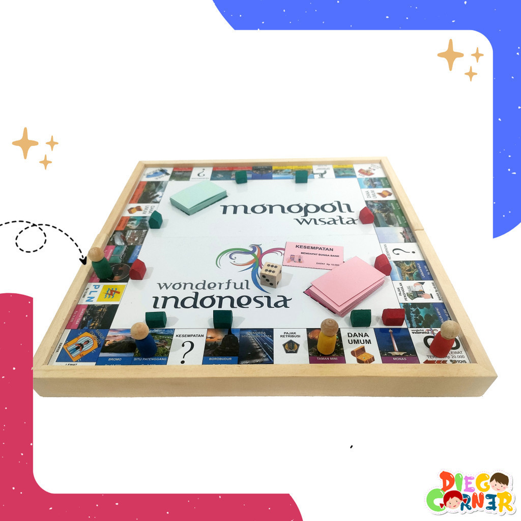 Mainan Anak Permainan Papan Keluarga Monopoli Kayu Wisata Board Game